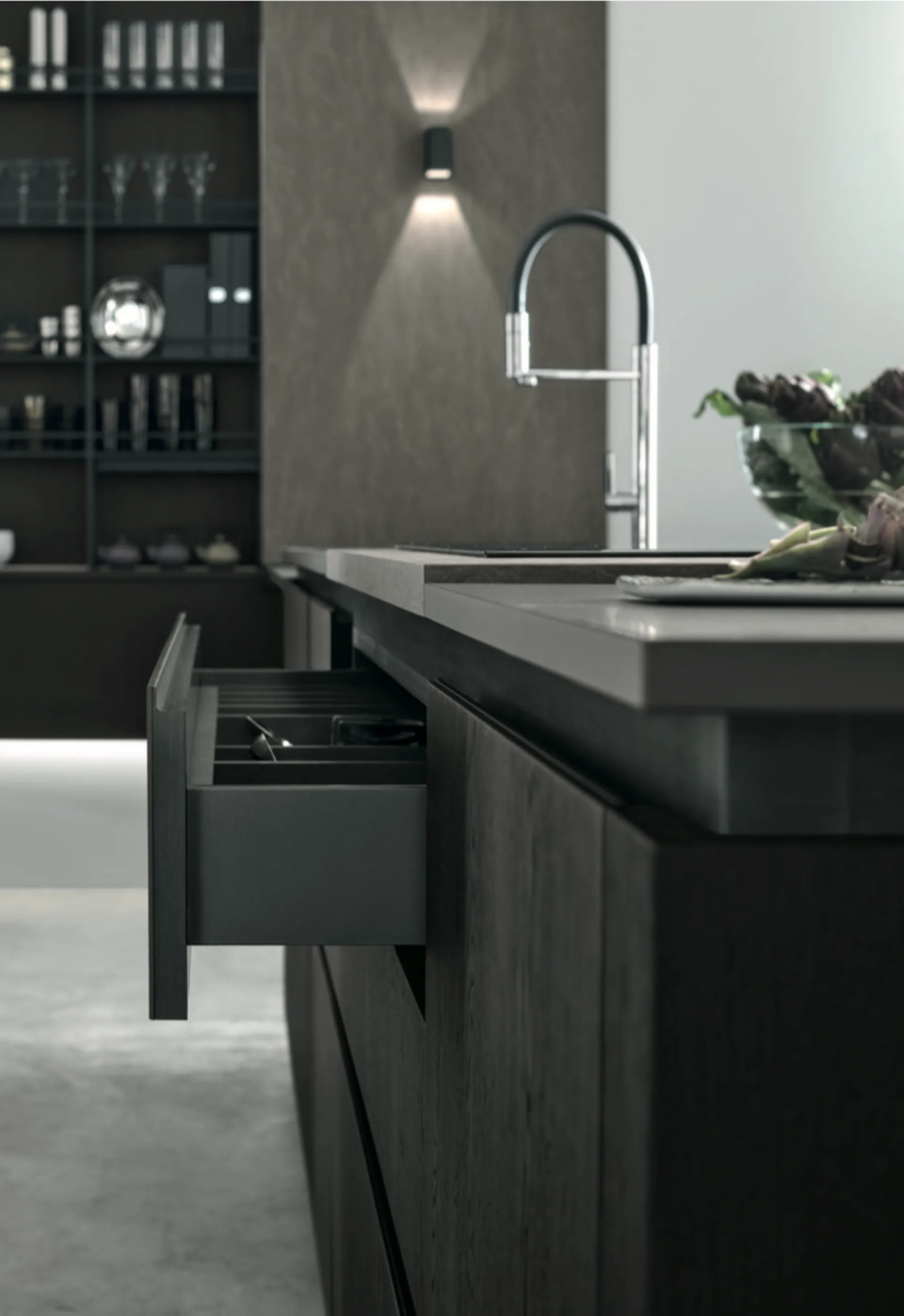 Natural è la prima proposta con cui Stosa dona maggiore profondità e altezza al sistema cucina. La scelta è caduta sul legno perché è il materiale naturale per eccellenza, ma anche il più pregiato, e una simile innovazione non poteva che valorizzarlo. Ma Natural è anche il risultato di un’estrema cura per i dettagli, che passa attraverso strategiche alternanze di spazi a giorno e vani chiusi da ante, isole con piani aggiuntivi, cappe concepite come lampade di design, ante in vetro con telaio in alluminio, una decina di differenti sistemi di apertura. L’elenco va molto oltre, per scoprire Natural in tutte le due declinazioni vieni a trovarci o richiedi una consulenza gratuita.